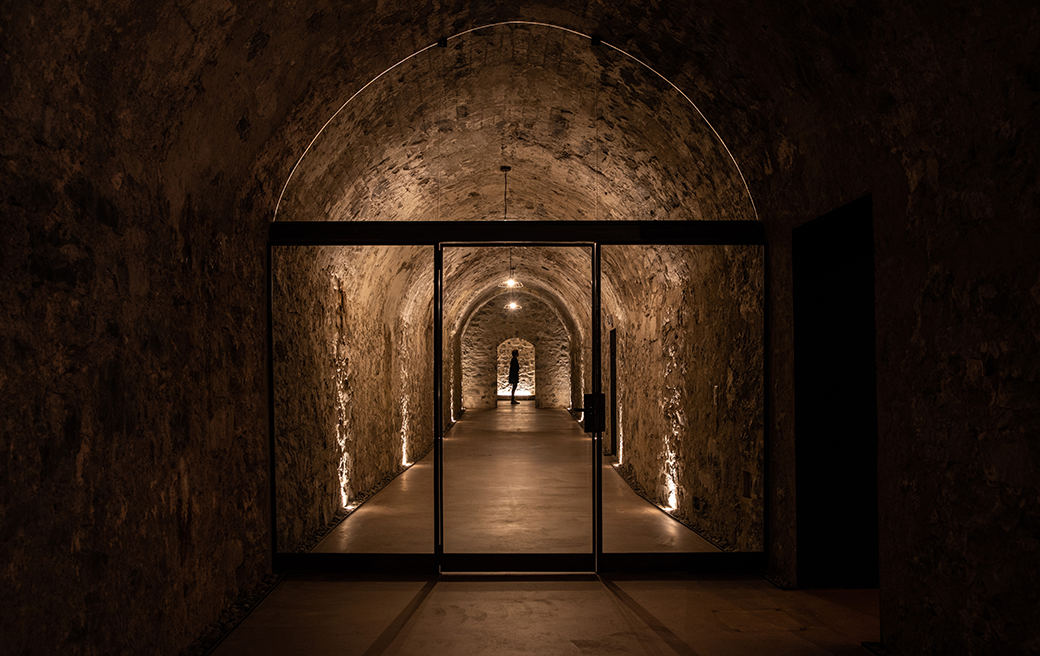 Das baufällige Gebäude muss umfassend renoviert werden. Die ursprüngliche Idee ist bescheiden: Das Gebäude soll um ein Stockwerk erhöht werden. Doch die Sondierungen ändern alles. Zwei Winter lang räumen die Mitarbeiter der Domaine Grand’Cour die Räume von Hand und mit Hilfe von Elektrowerkzeugen. Nach und nach kommen im Untergeschoss Treppen, Durchgänge und neue Gewölbe aus Jura-Stein zum Vorschein, die sich bis zum Ende des Grundstücks und teilweise sogar darüber hinaus unter benachbarten Grundstücken erstrecken. Die Tiefe beträgt fünf Meter, früher sogar noch mehr, wie die alten Steinabläufe und heute verschütteten Schächte beweisen.
